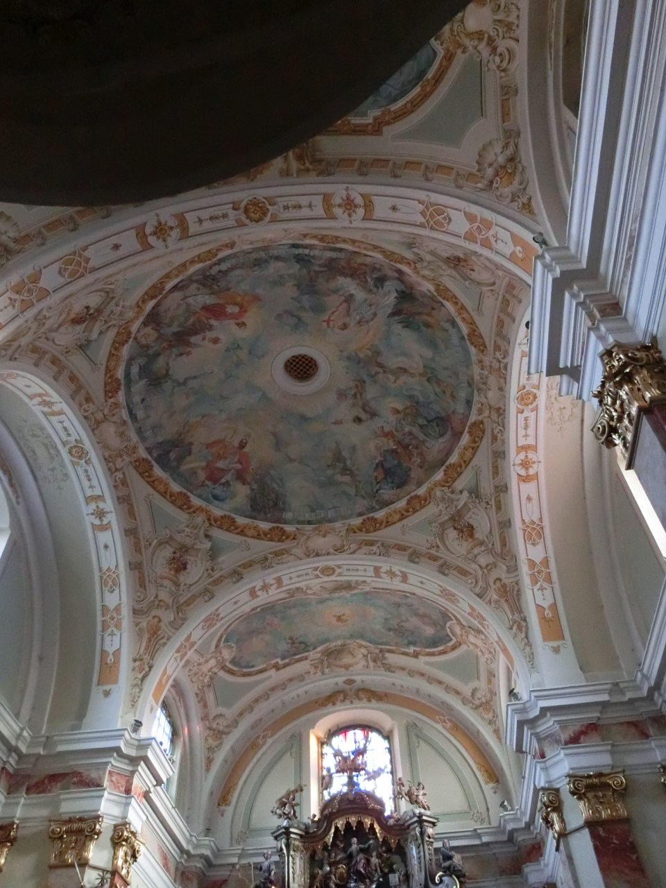 2つの塔の白い教会、外見はシンプルですが、中は印象が違い豪華です。