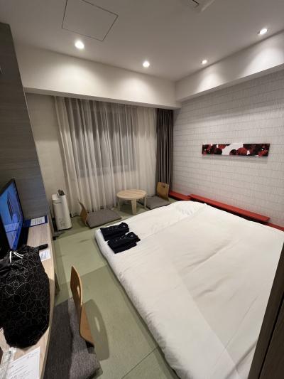 部屋は2台のベッドとリビングの場所に敷布団を敷いて友人達と過ごしたが、自力でソファを動かさねばならず落ち着かない。