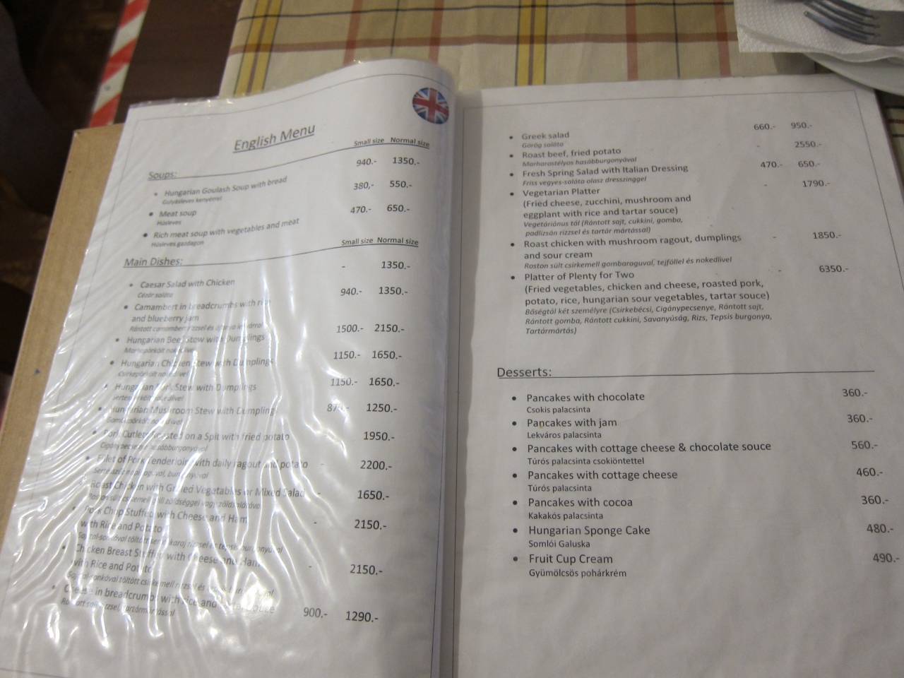 代表的なハンガリー料理があり、スモールサイズとノーマルサイズがあり、スモールサイズでも満足のいく量でした。
