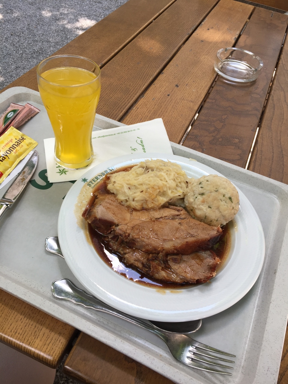 ちかくに小さいビアガーデン(SRERNBRAUの看板がかかった小道の奥)があるので、そこでビールの見ながら齧るのもいいかもです。- 旅行時期