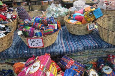 ビーズ製品(5~50ケツァール)や木彫り、メモ帳やボールペンなど少ないですがいろいろ。