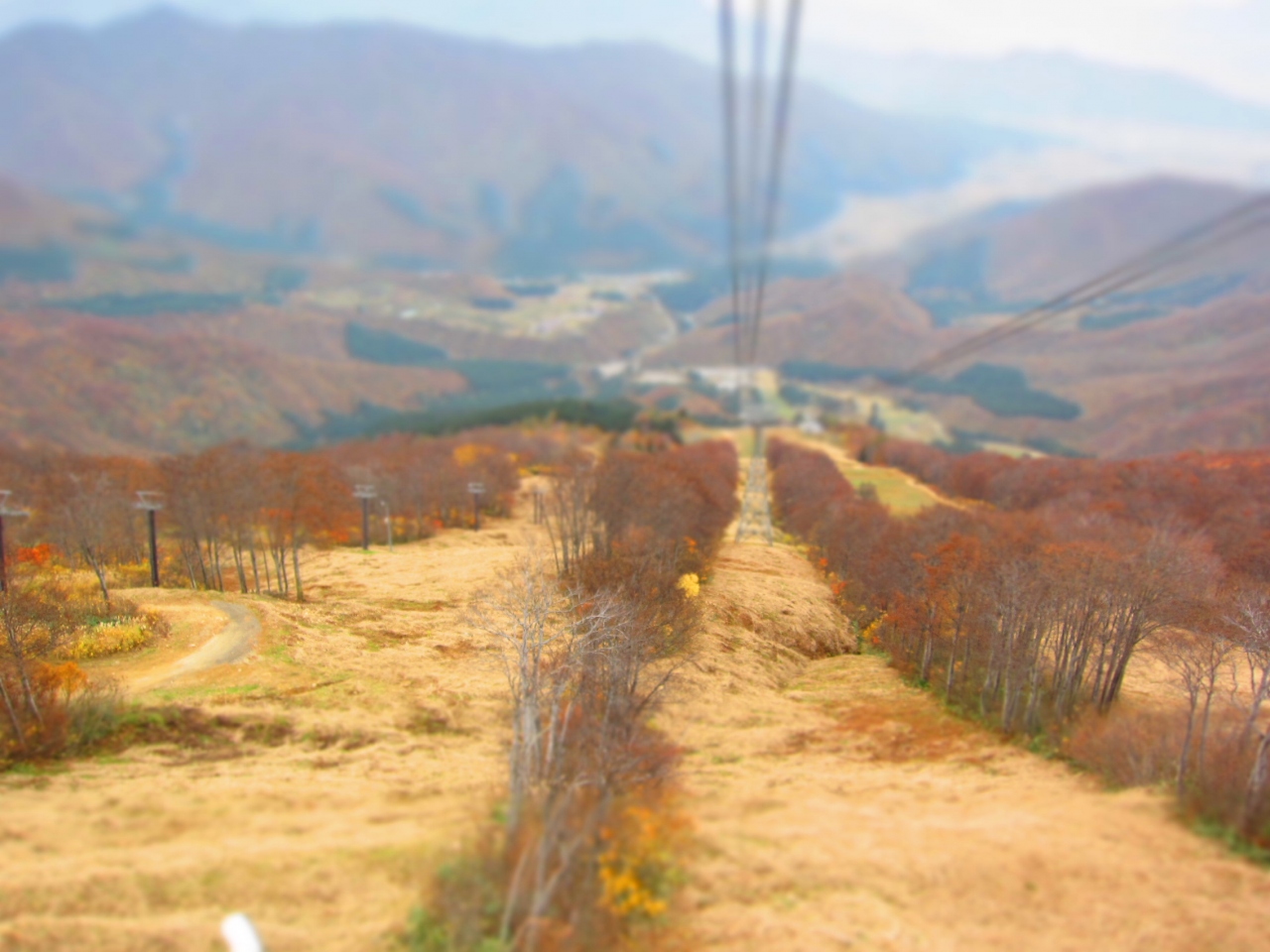 紅葉にはちょっとだけ遅い時期で、山頂部は終わっていました。しかし、山麓部は赤や黄色に染まった山々を見ることができました。ちょっと天気が悪かったので、晴天ならもっと紅葉の色が映えたと思います。