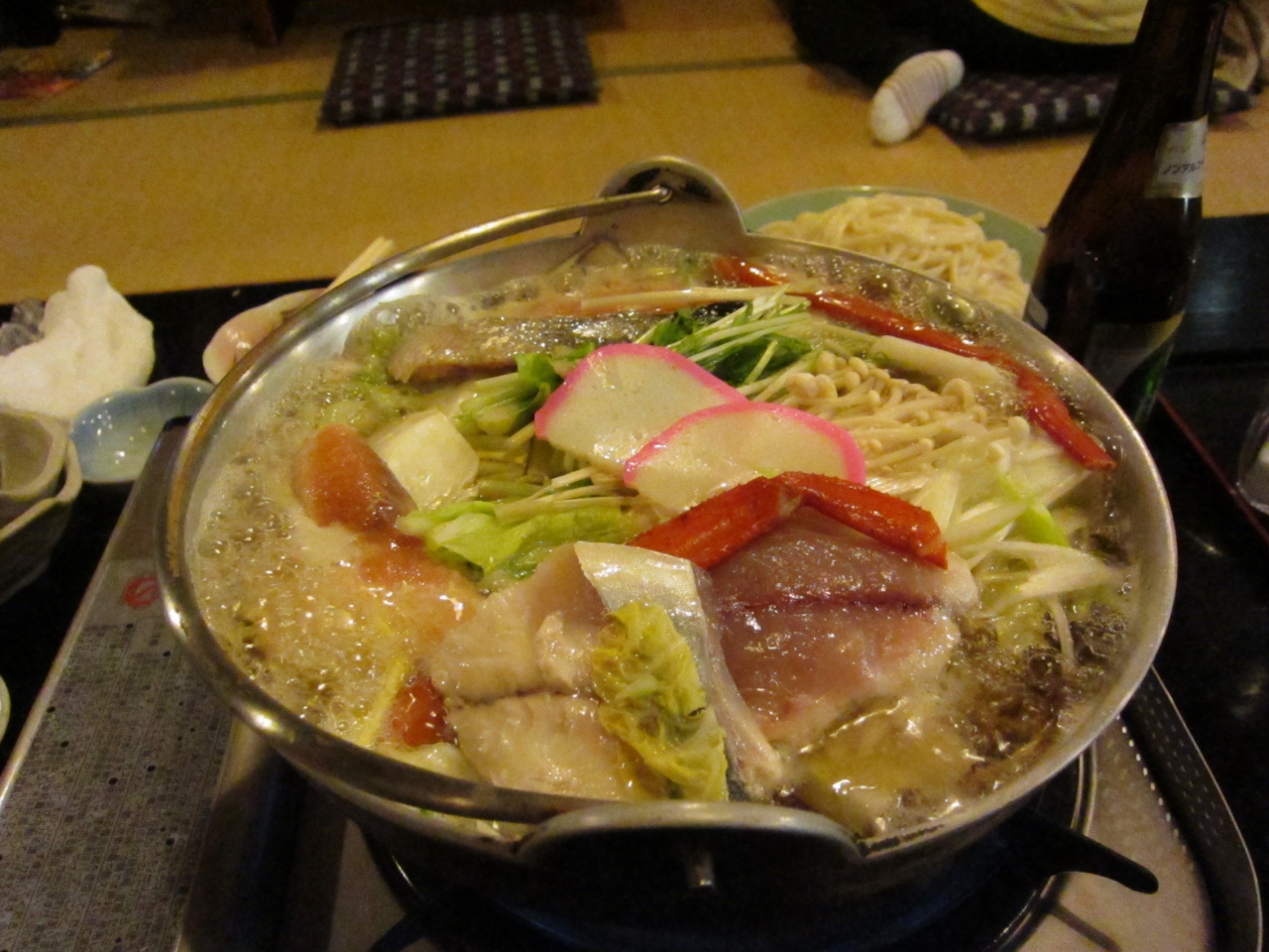 和食処だけど、うどんすきがとってもおいしいお店。週末は予約でいっぱいになるので、早めの時間なら入れるかも。うどんすきは出汁の利いたしょうゆベースで、野菜たっぷりでヘルシー。2人前からとなるが、2人ならこれだけで十分。
