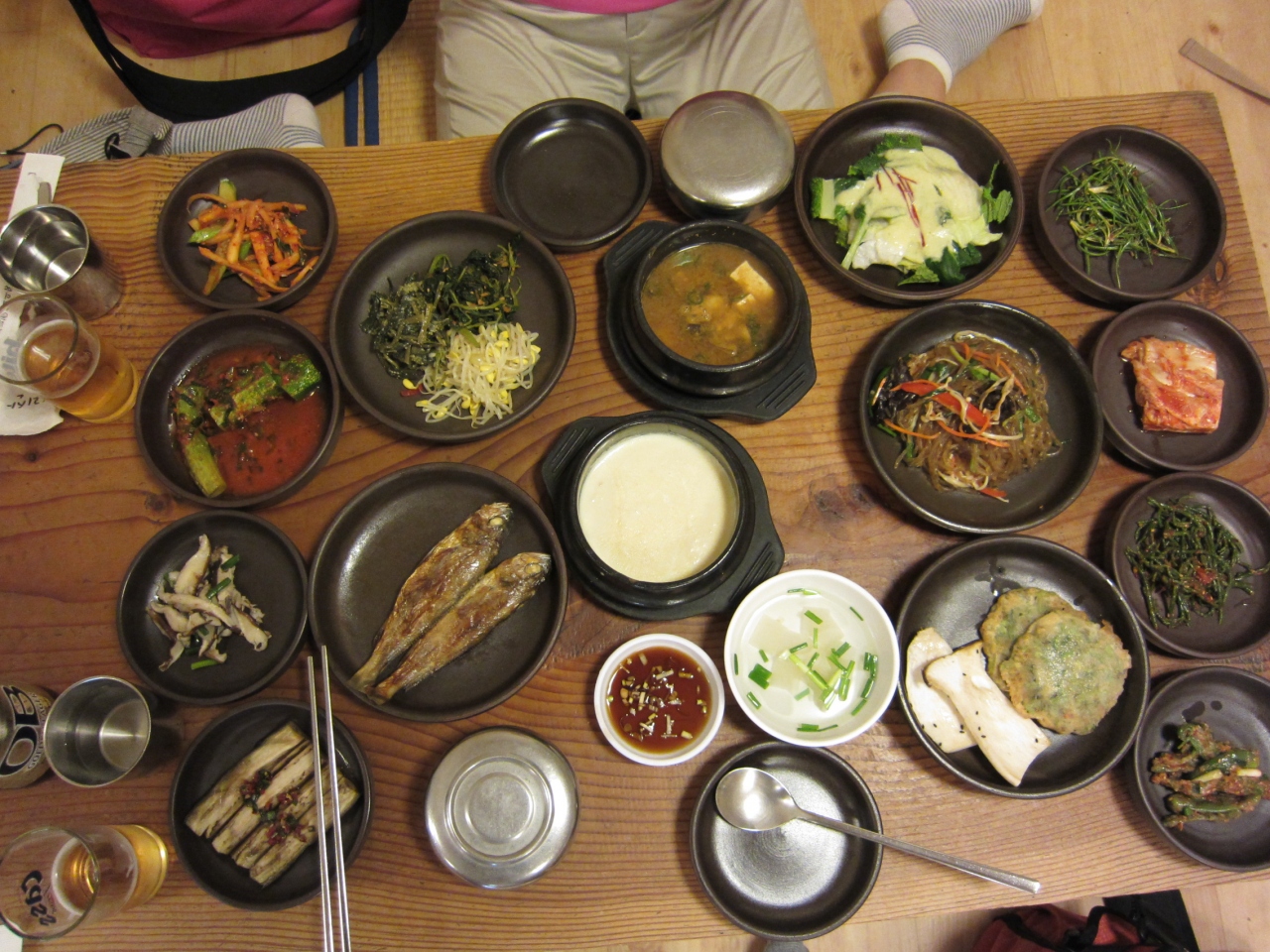 たくさんのおかずに、豆腐なべやチゲ鍋などのセットで、