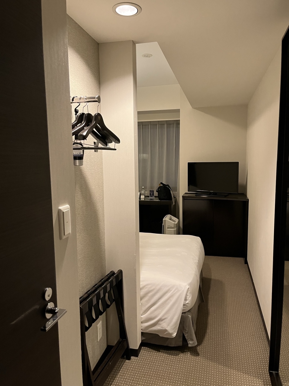 デスクがデスクっぽく存在するのが高評価です。大浴場(中浴場)と、部屋にはシャワーがあります。駅とウィンク愛知に近く、コンビニの上と立地はたいへん結構。朝食はあっさりでそれもまた仕事の時には良いかも。なぜか南米風の食事です。