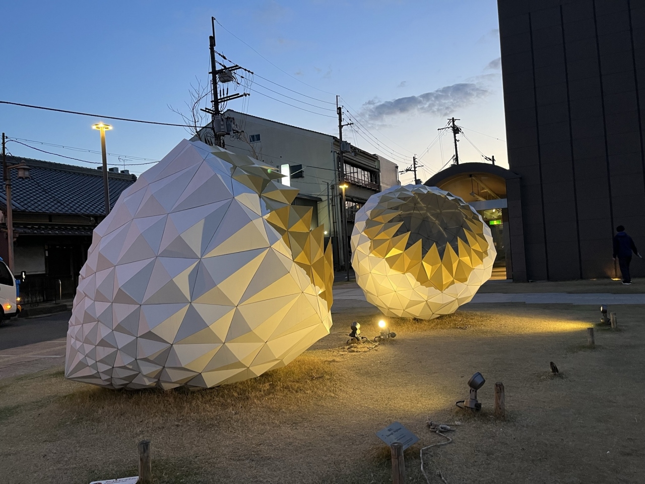 ならまちセンターは猿沢池の近くにあり、昼間は、観光客も立ち寄れるところです。ならまちの振興のためにいろいろパンフレットを出しており、今回その冊子は観光に有用でした。前には白いイチゴのオブジェがあります。白いイチゴはパールホワイトといい、奈良の名産です。