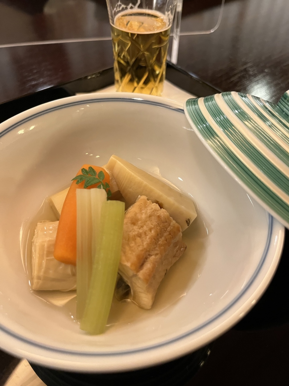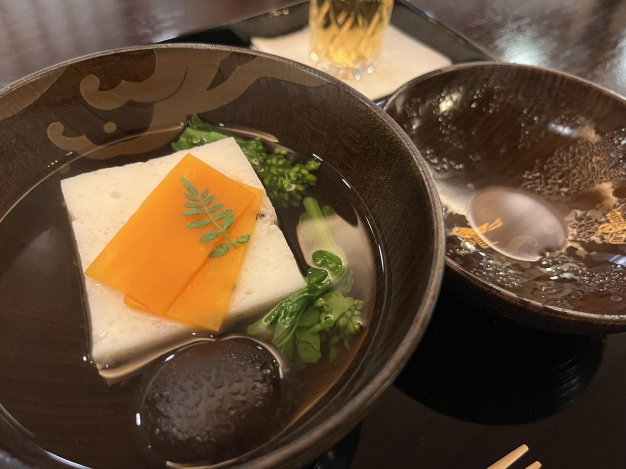 新宿駅東口、出てすぐの素敵なビル、その中に柿傳があります。ビルには、茶の湯関係のフロアが多く、全体に和の雰囲気。そして柿傳。広々とした椅子席で、どこにいるのか忘れてしまいそう。京都にいるかのような懐石料理をゆったりと楽しみました。季節感あふれる盛り付け、素材、湯葉や吉野葛などもたっぷり使われています。抹茶にも銘柄のある世界。名のある陶芸家のお茶碗で頂きます。ビルを出たらあっという間に現実世界に引き戻されました。
