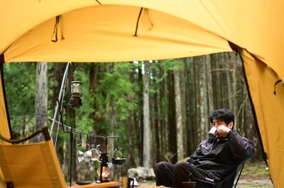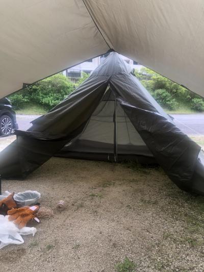 ソロテントなのでひとり寝れるだけそれが秘密基地感があってワクワクする笑