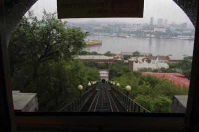 ケーブルカー。良い景色です。ついつい一番前を陣取りました。