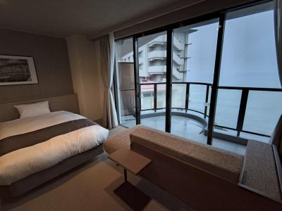 部屋は、ビジネスホテルよりは広いが、スーツケースを2個広げるのは少し厳しい。