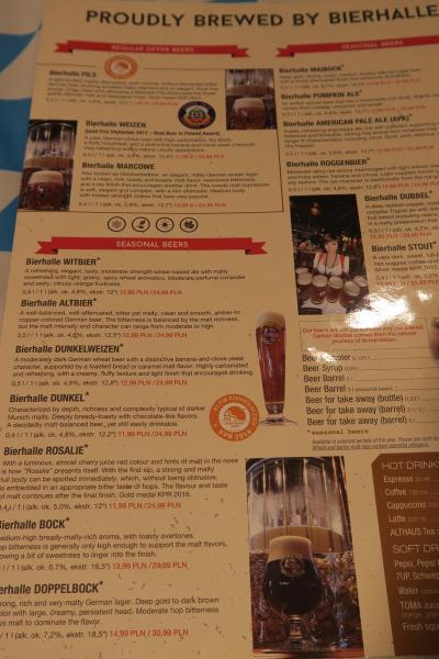 ビールは、メニューにはたくさんあるが季節限定のものもあって全て飲めるわけではないが、美味しかった。- 旅行時期