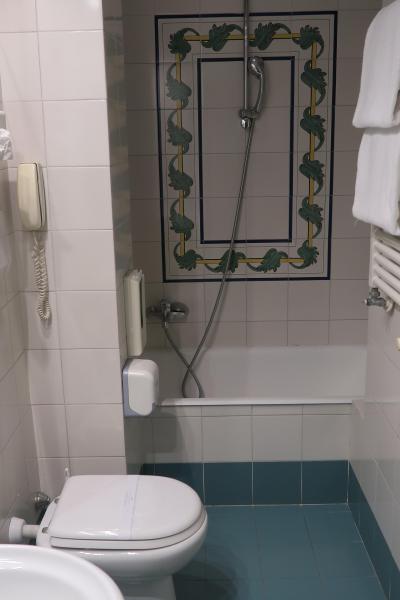 バスルームは、バスタブが付いているものの、かなり狭い。
