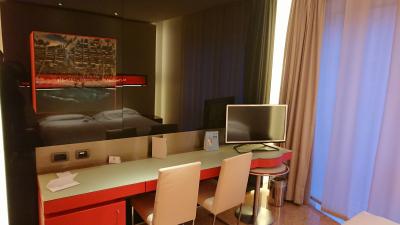 部屋は、変な形をしていたが、スーツケース2個を広げられる十分な広さがあり。
