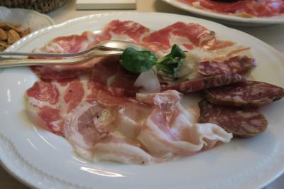 パスタ2品とステーキ、ビールとランブルスコのハーフをオーダーして、60ユーロしなかった。