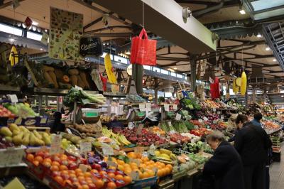 地元に根付いた市場らしく、野菜、果物、魚介、肉、花まで売っている。