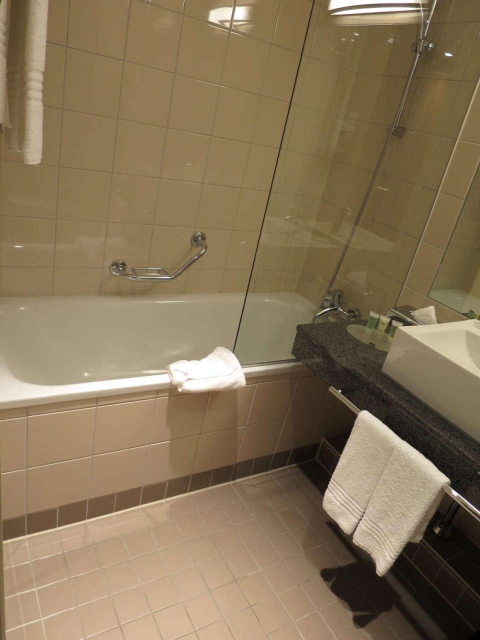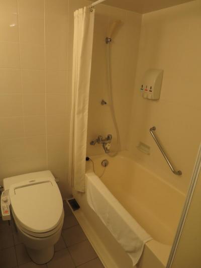 部屋は、スーツケースを2個広げても十分な広さで、バスタブ付き。