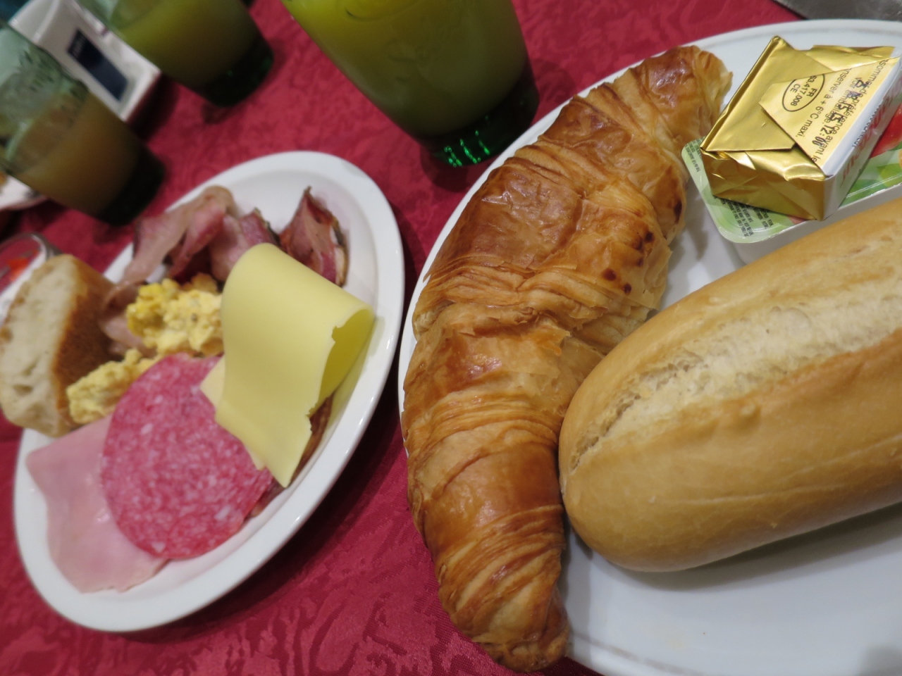 朝食は13ユーロ(我々はツアー代金に含まれていた)だが、それなりに種類が多く、パンをはじめ、どれも美味しくて毎日食べすぎてしまった。