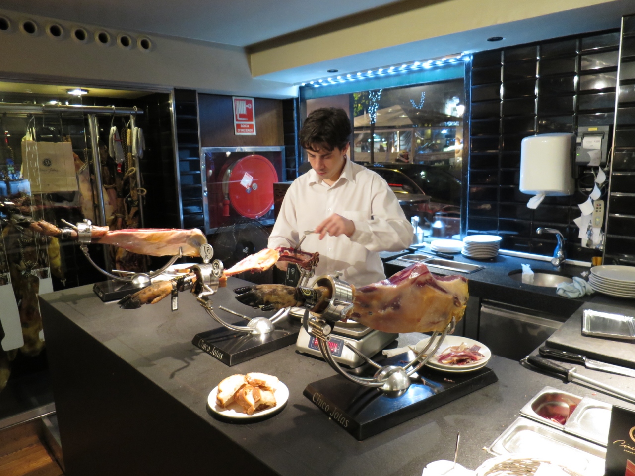 純血のイベリコ豚から生ハムを作っている、スペイン王室御用達のサンチェスロメロ社の直営レストラン。