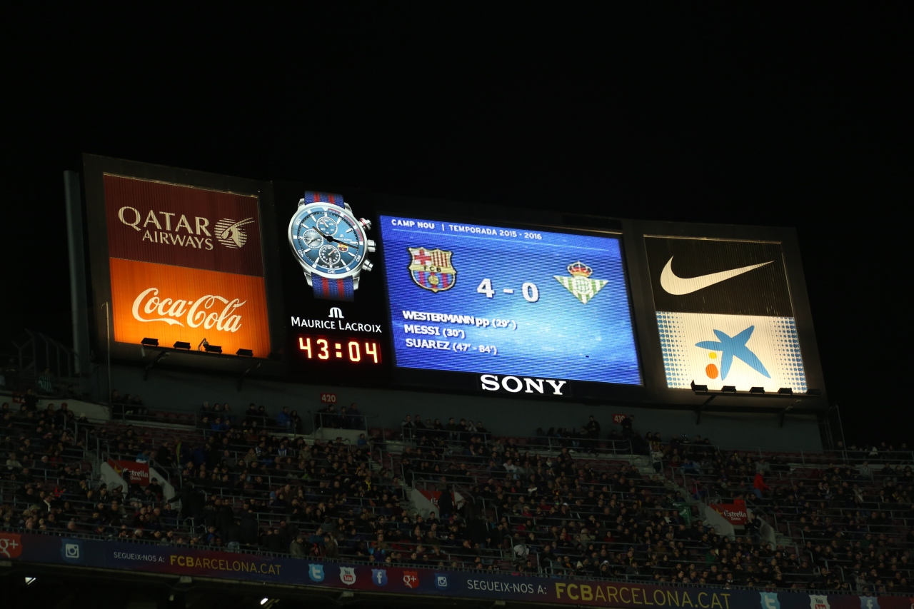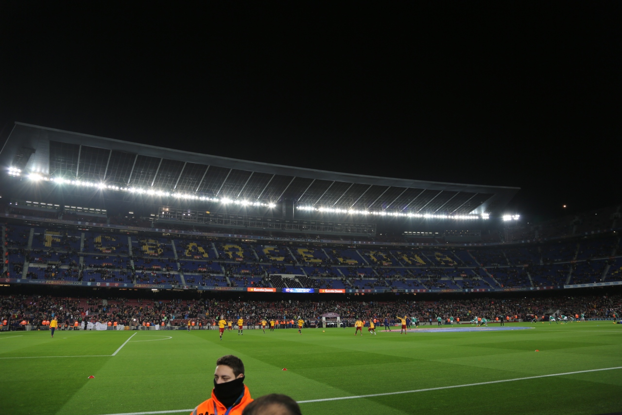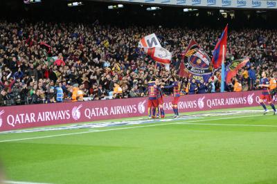 試合が始まると、観客ほぼ全員がバルササポーターなので、歓声やブーイングが日本では聞くことのできない迫力。