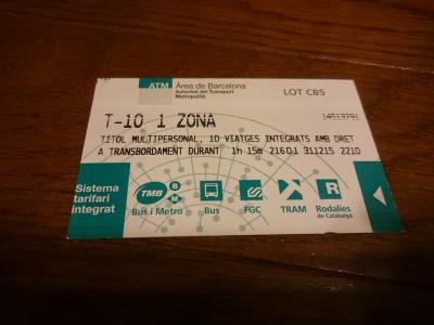 バルセロナ市内であれば、ほとんど地下鉄で移動できるので、10回分のT-10チケットがお得。