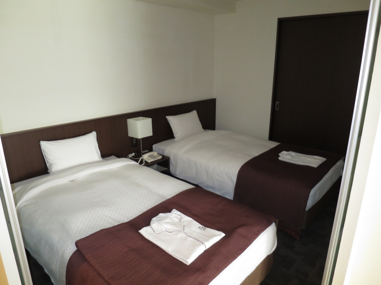 部屋は、広いとは言い難いものの、スーツケースを2個広げることは可能。