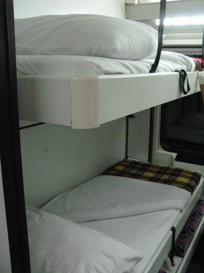 食堂車では、夜は生ビールが飲め、朝食もそこそこ。