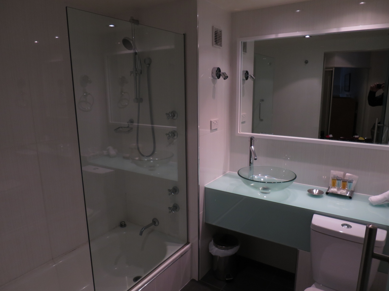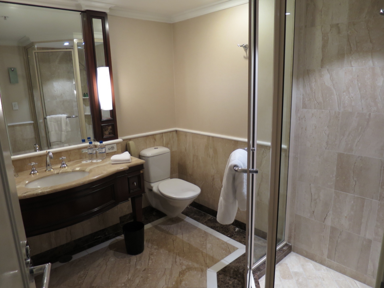 部屋は十分すぎる広さで、バスルームは、バスタブとそれとは別のシャワーブースがあり、奮発した甲斐があった。