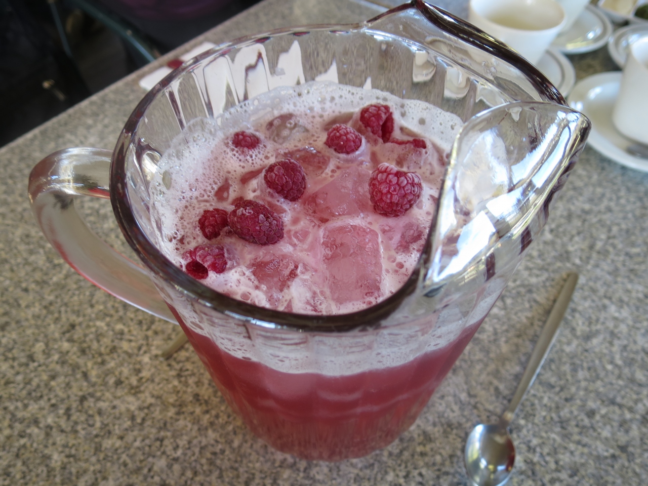 ラズベリーソーダやラズベリーチョコ、ラズベリーのデザート、ラズベリーのスパークリングワインとラズベリー尽くしで、どれも美味しかった。