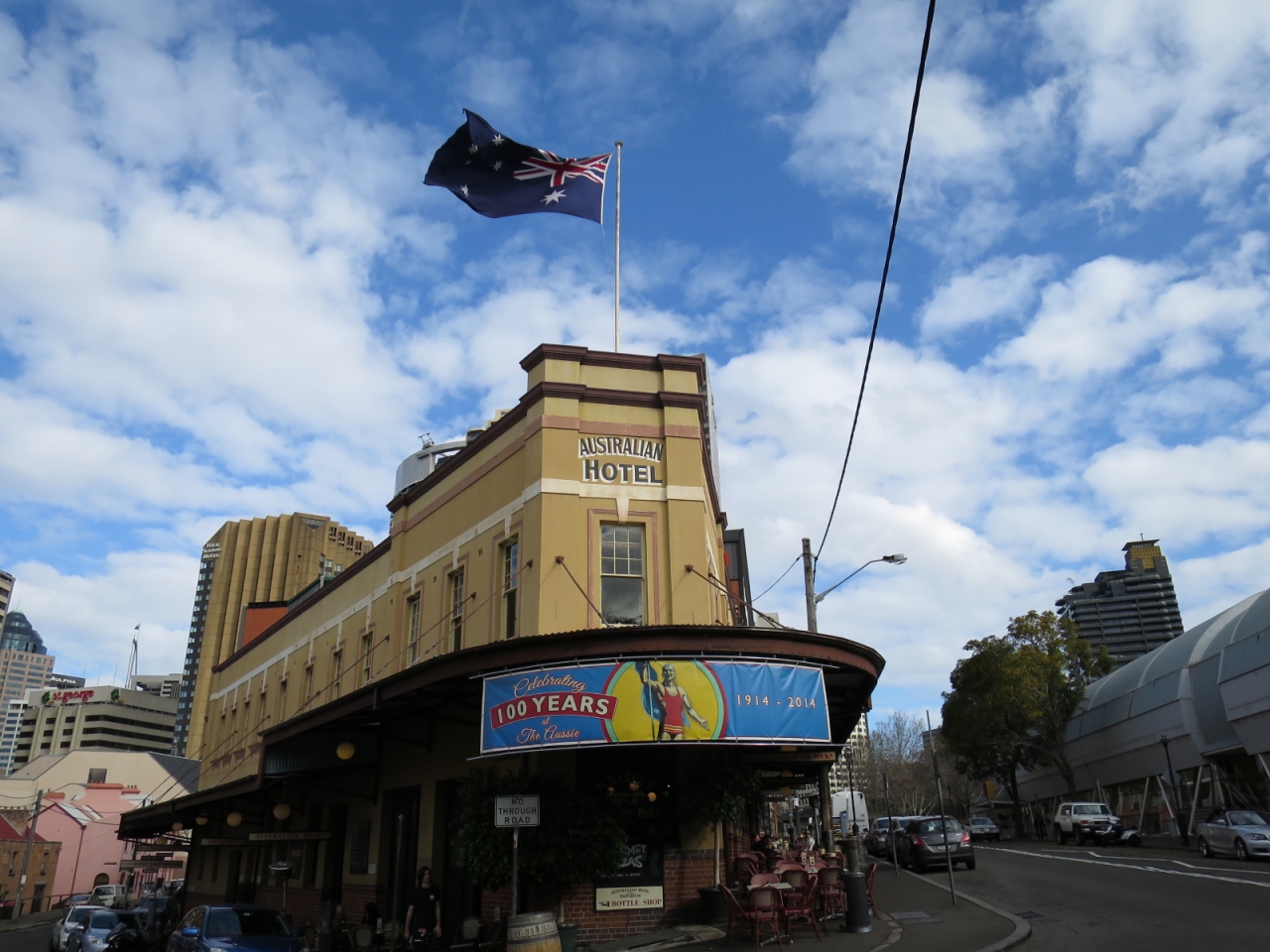 テラス席もあり、夜寒い中でも、たくさんの地元の人が楽しそうにビールを飲みながら食事をしていたのは、シドニーらしい風景。- 旅行時期