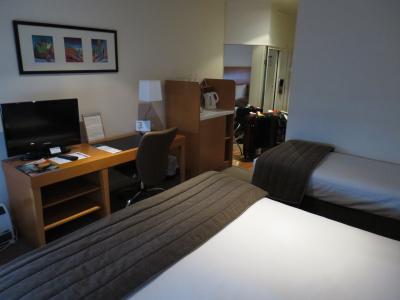 部屋は、広いとは言い難いが、スーツケースを2個広げることは可能。