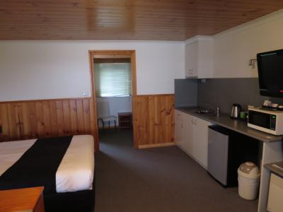 部屋は、スーツケース2個広げても十分な広さがあり、冷蔵庫、電子レンジ、コーヒーメーカー完備。