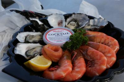 観光客向けに、牡蠣とエビのセットなど用意されている。