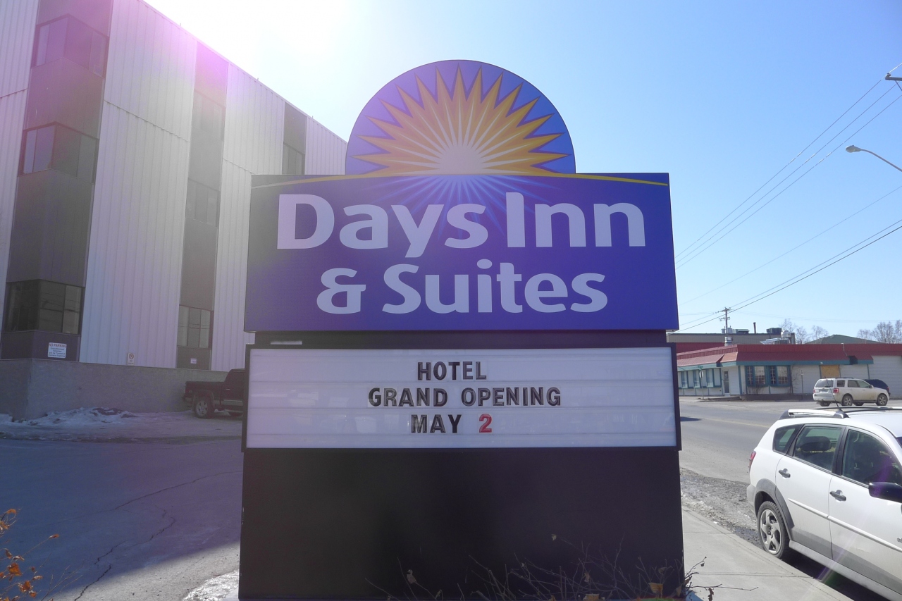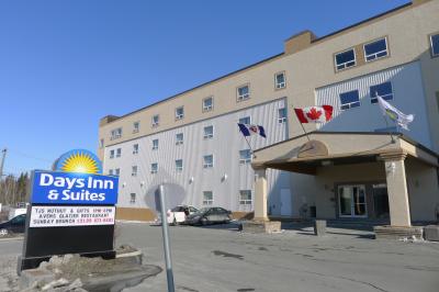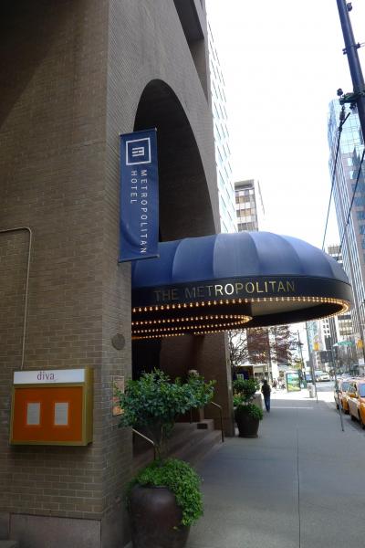 スカイトレインのバンクバーシティセンター駅の出口を出て、左斜め前に辛うじて見えるホテル。