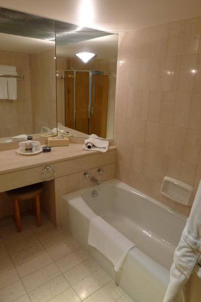バスルームは、バスタブとシャワーブースが分かれていてかなり広く、ドライヤーあり。