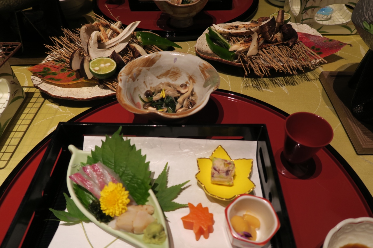 旅館のWebサイトにはベストレート保証とあるが、旅館のWebサイトに記載のないコースが楽天トラベルにあった、松茸尽くし懐石を予約。