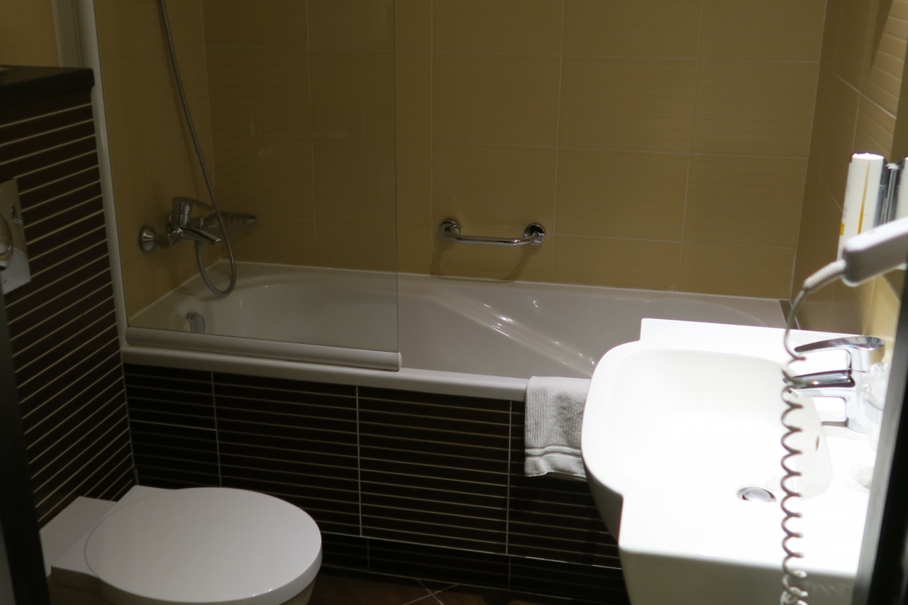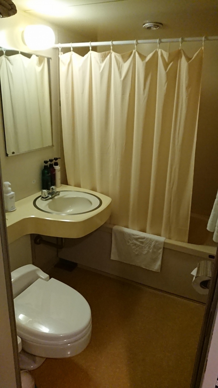 バスルームは広いものの、コンセントがないので、ドライヤーは部屋でしか使えないのが残念。