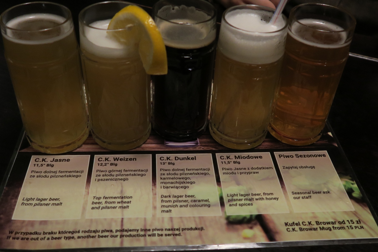 5リットル入るビールサーバーを頼んでみたかったけど、さすがに2人では厳しい上に長旅の疲れもあり、テイスティングセットを2人で飲むのが精一杯だったことが、少し心残り。- 旅行時期