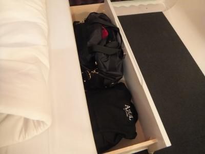 フロントではまずカードキーと、キャビンの中の鍵付き引き出しの鍵を渡されます。