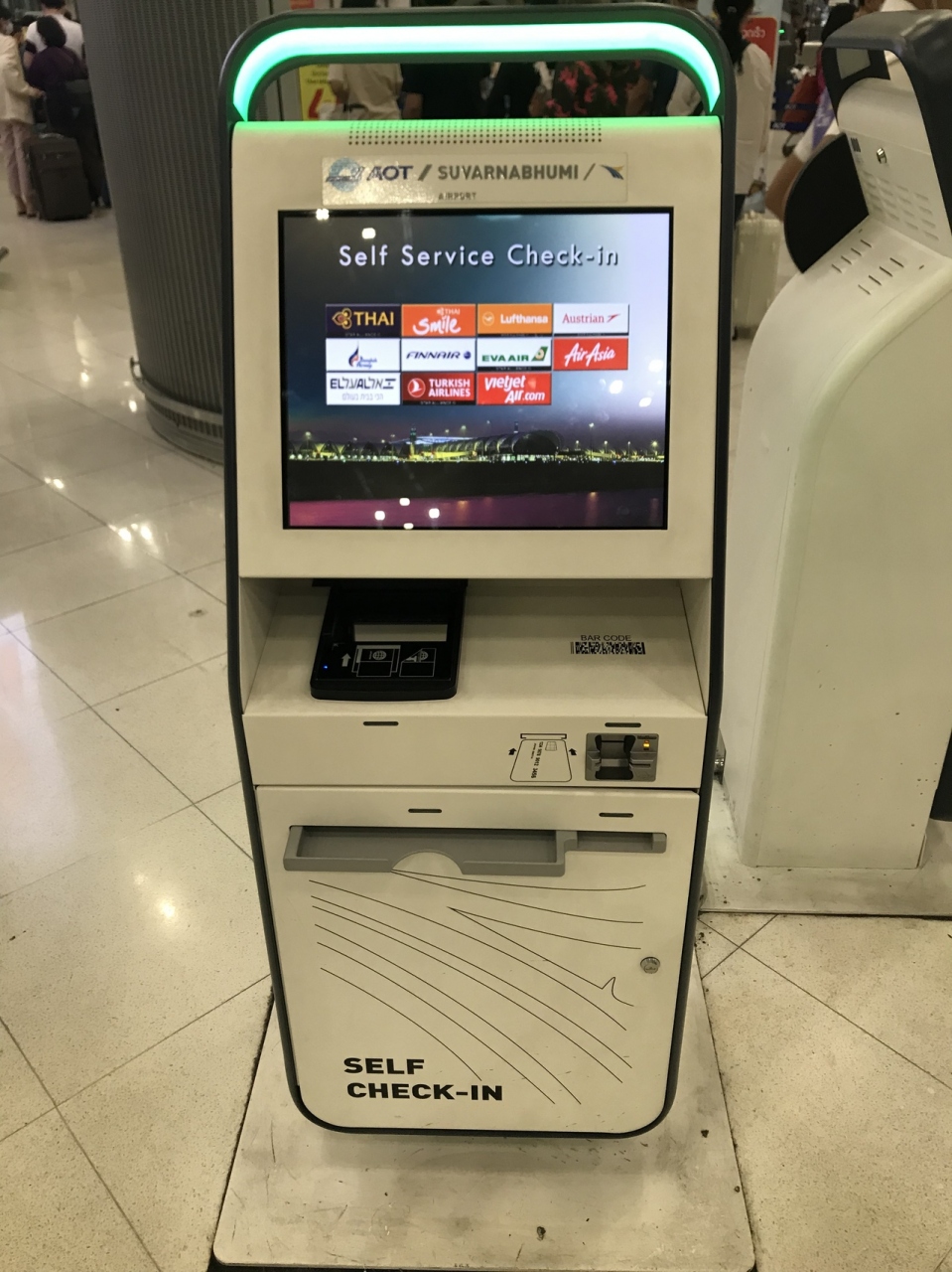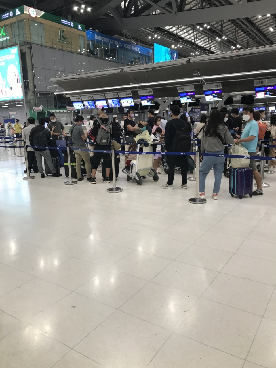 タイ国際航空利用ね方は、スマホでオンラインチェックインして、セルフバッグドロップを利用しるとかなり時間短縮になります。- 旅行時期