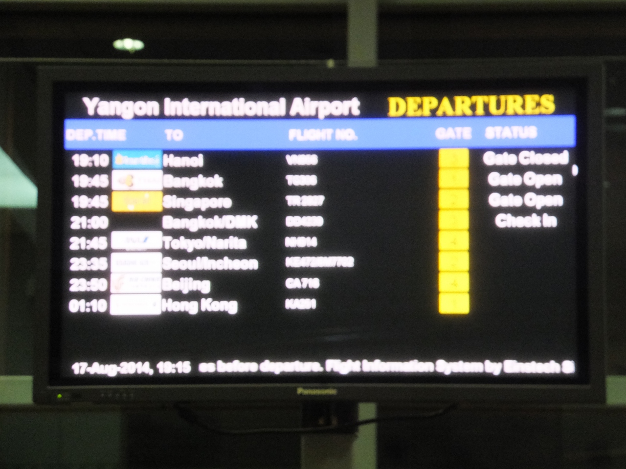 2012年8月11日・15日 ヤンゴン往復で利用。