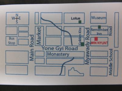 住所 YONE GYI ROAD, NANDAWUN QR, NYAUNG SHWE, INLE LAKE.