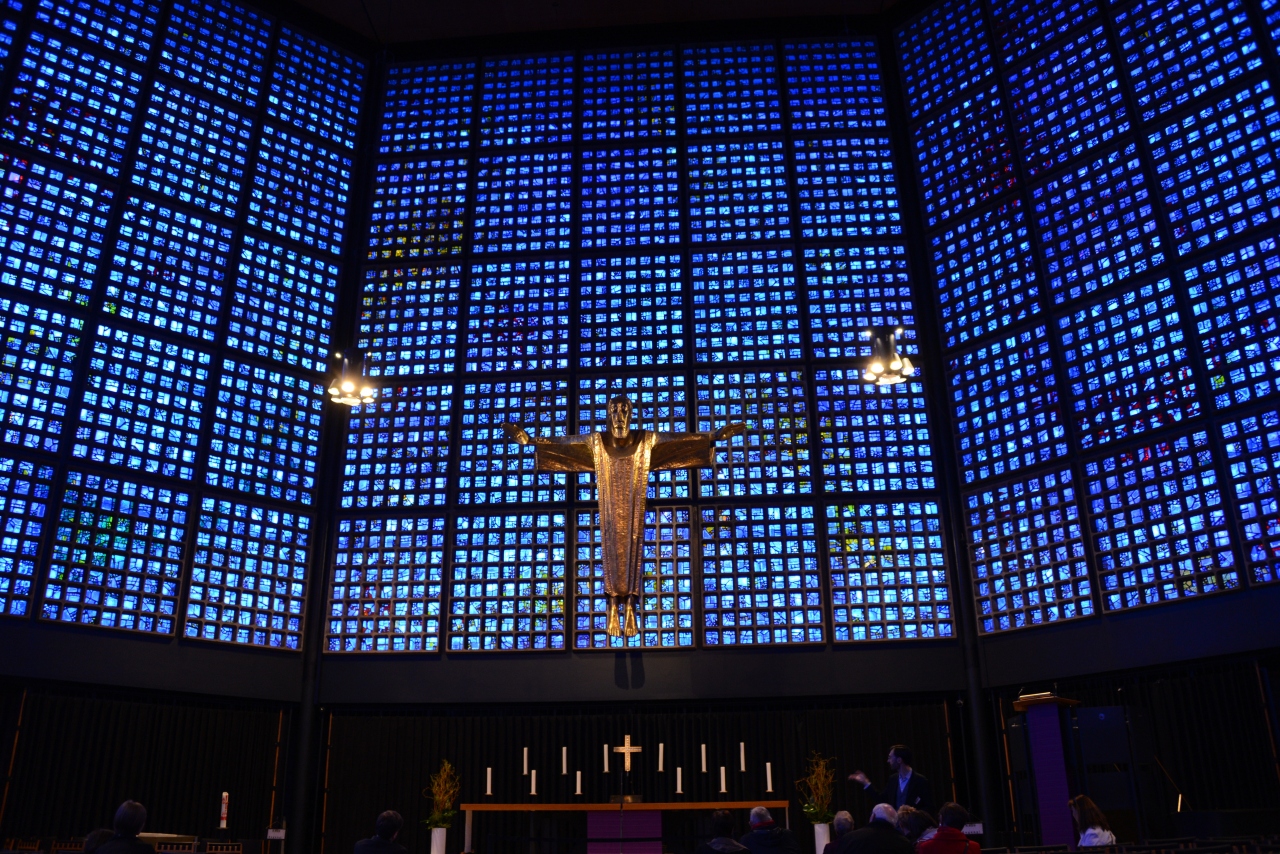 戦争の傷跡の残る外観も必見ですが、一面が青色のステンドグラスに覆われた教会内部が最高でした。