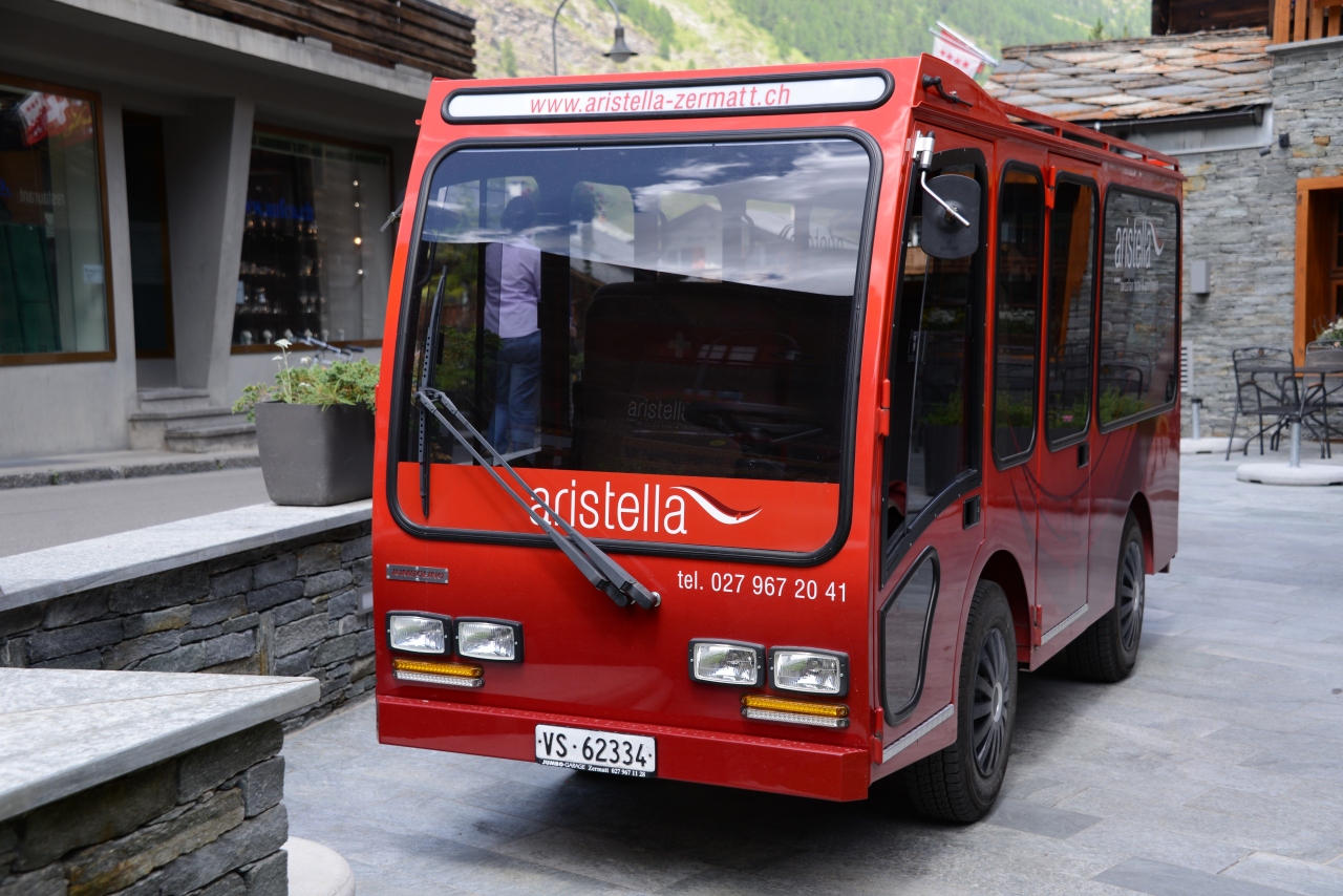 駅前にホテルへの直通電話があり、電話をすれば電気自動車で迎えに来てくれます。