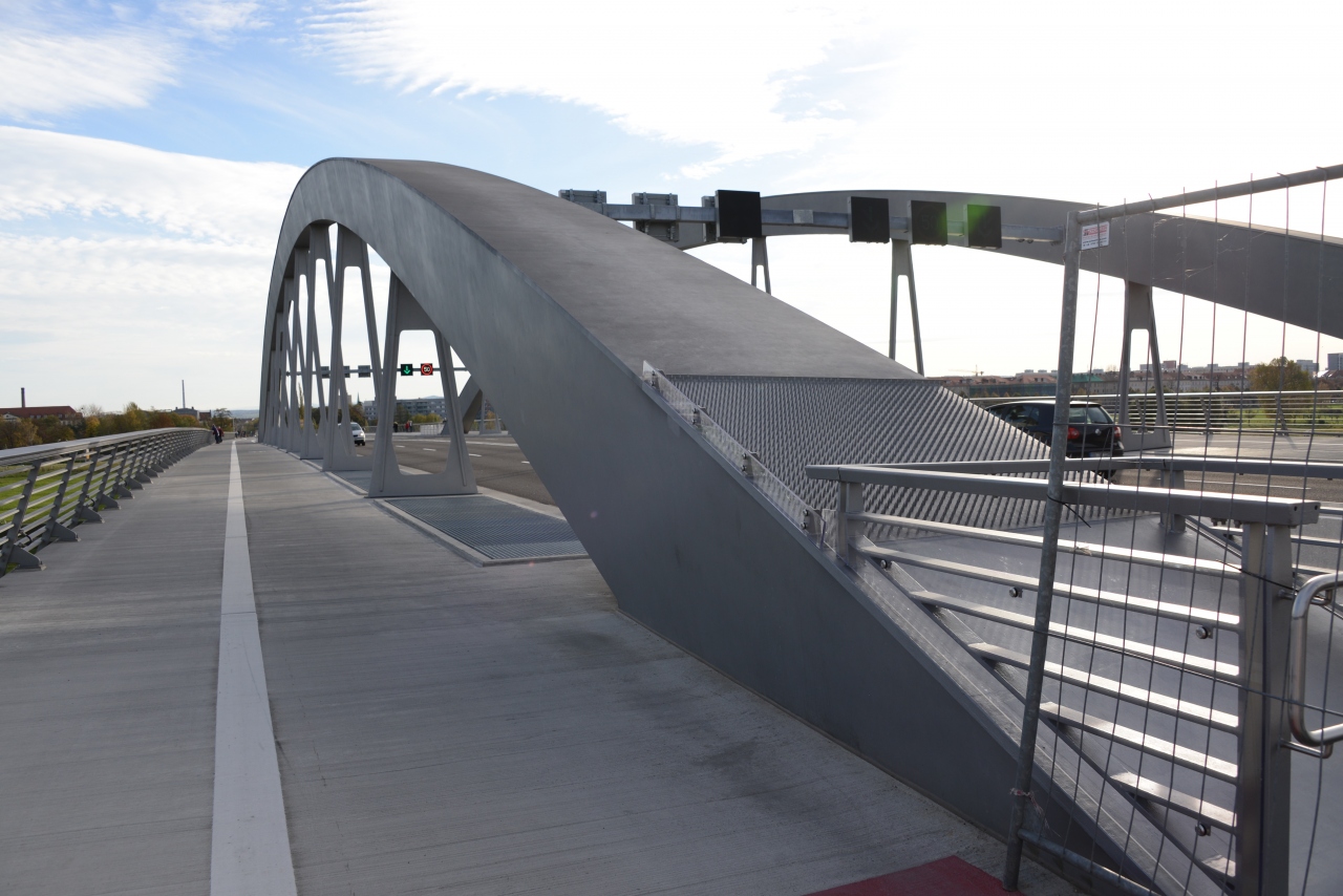 橋は片側2車線で自転車レーンもあり、もちろん歩道もあります。