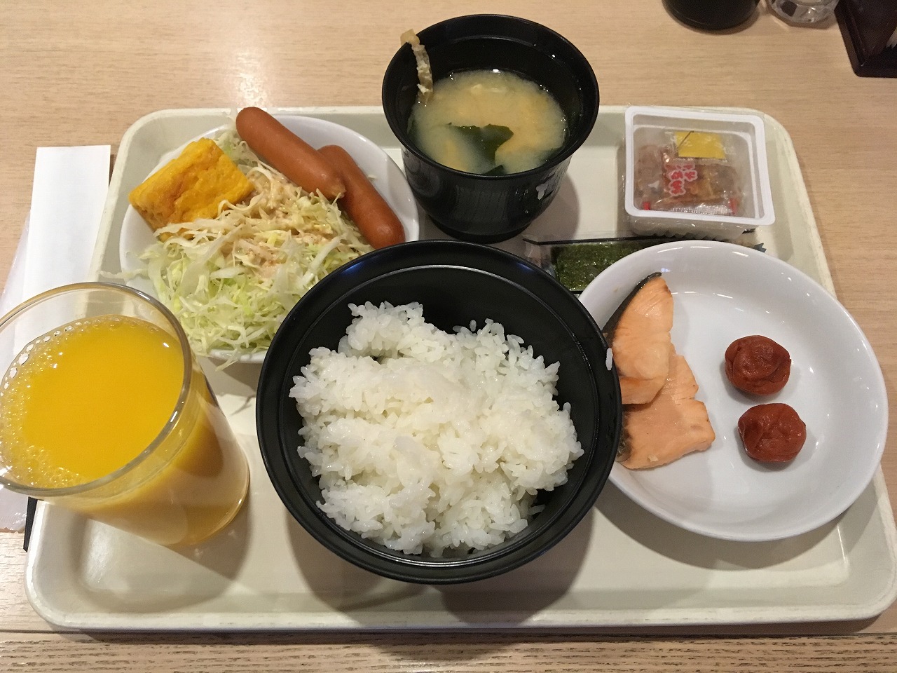 朝食はおかずの種類は少ないものの美味しくいただきました。