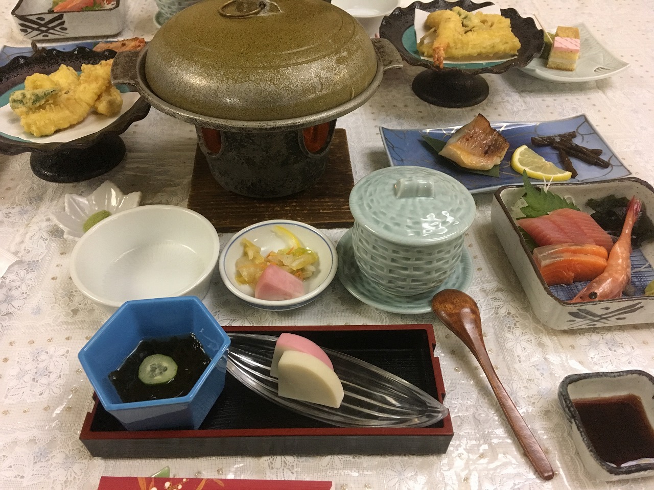 夕食は3種類有り、今回は3泊したので全ての食事をいただきましたが、最もボリュームのある鶴屋御膳は完食できませんでした。