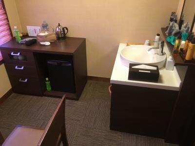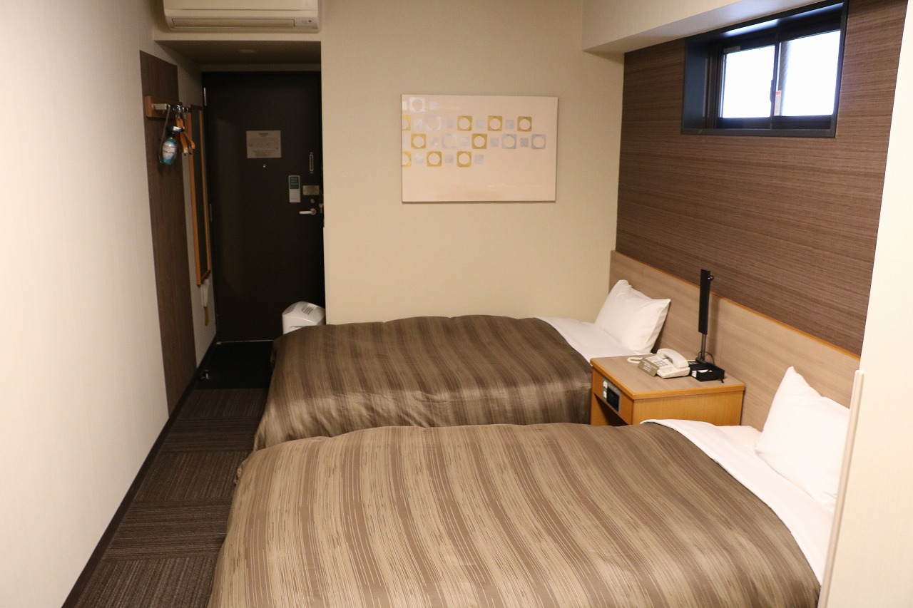 客室は通常のビジネスホテル並みで、少し狭いけれど、泊まるだけなら十分な広さです。