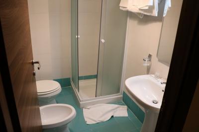 浴室は狭いシャワーブースのため、水がかからずに温度調整するのも大変でした。