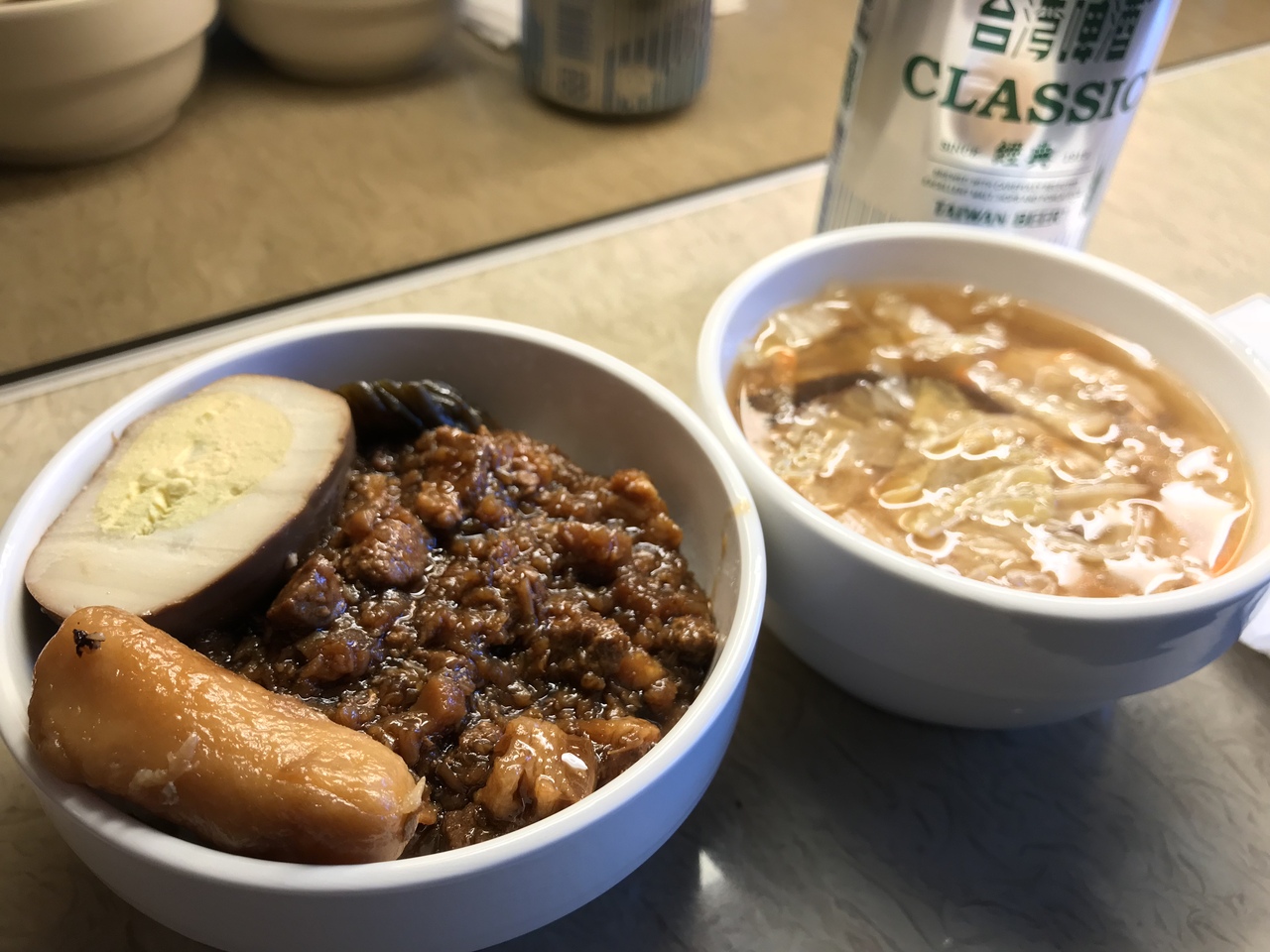 台北最後のご飯をここで頂きました。小籠包に焼売、焼きそば、スープ、果物などもありました。メッチャ美味しいって訳ではありませんが十分でした。市内でルーロー飯を食べてなかったのでここで頂きました。癖が少なく食べやすいお味でした。
