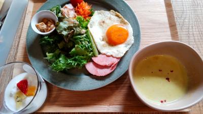 隣のCafeの朝食は、明るい店内で、野菜の多い美味しい朝食でした